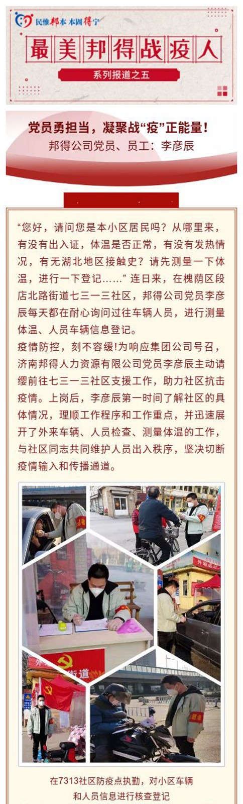 最美邦得戰(zhàn)“疫”人 — 系列報(bào)道之(五) - 新聞資訊 - 濟(jì)南邦得人力資源有限公司